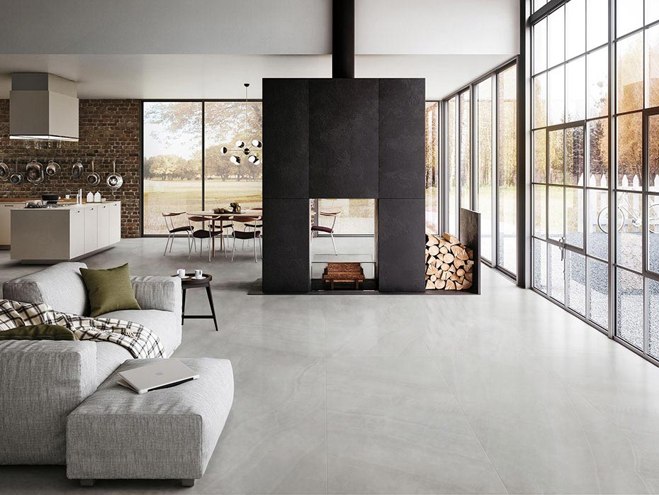 崇尚原木韵味,北欧风格家居中常看到木色家具,除去纷繁复杂的纹路,铺贴石纹瓷砖,居家空间仍可回归自然纯粹的状态,