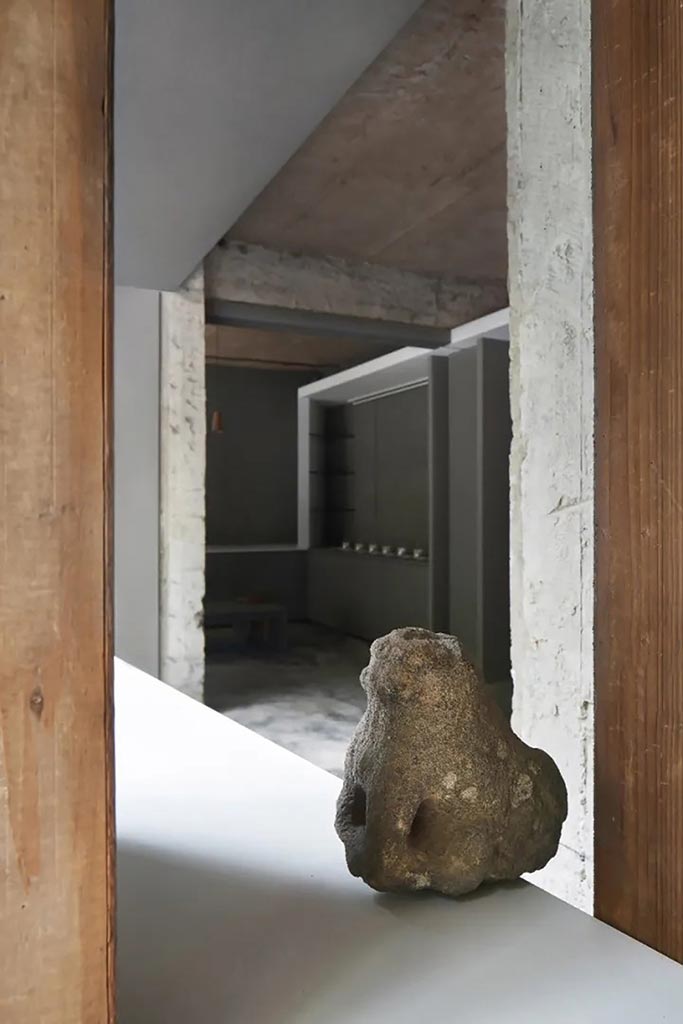 忽聞陣陣咖啡香從一個木質通道溢岀,沿著昋味尋去,一道白色從縫中微微探岀,端頭上的石獅,蹲伏於柔和的光線裏,仿佛沉浸在思緒之中。倘若順著視線望去,會覺得那道白色似舞動的獅尾,在空中翻騰飛躍,靈活地遊走在空間之中,一眼望不到盡頭,不禁讓人好奇地往裏走去。