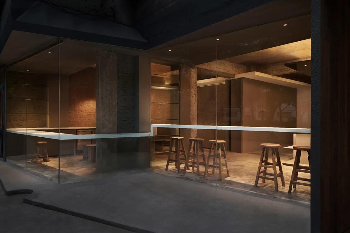 映入眼簾的是中心的方形吧臺,四周可圍繞而坐,其中央的水泥柱順著鏡面無限延伸,於倒影中注視己身,一虛一實,看鏡中人之倦怠,思鏡外人之碌碌。環繞著吧臺的各個角落形式不一,但在這充滿歲月痕跡的狀態下,顯得份外自然,新與舊之間的碰撞,不再是對立,而是包容。即便是素昧平生之人,也可在這份包容下和諧共處,相談甚歡。