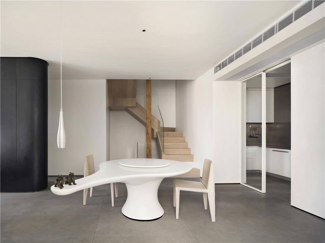 /“水滴”灵感为设计的大长台,营造让人心平气和的美和气场。