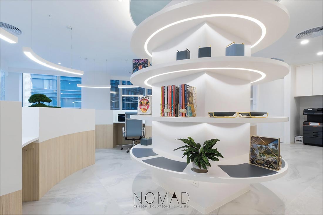 该项目业主是百千晴,一家专注美容产品发展事业的贸易公司,项目选址在澳门繁华的商圈内。在限定的空间内,设计团队通过材料与材料的碰撞,质感与质感的融合,完成空间功能分割的同时凸显企业的的特性。
