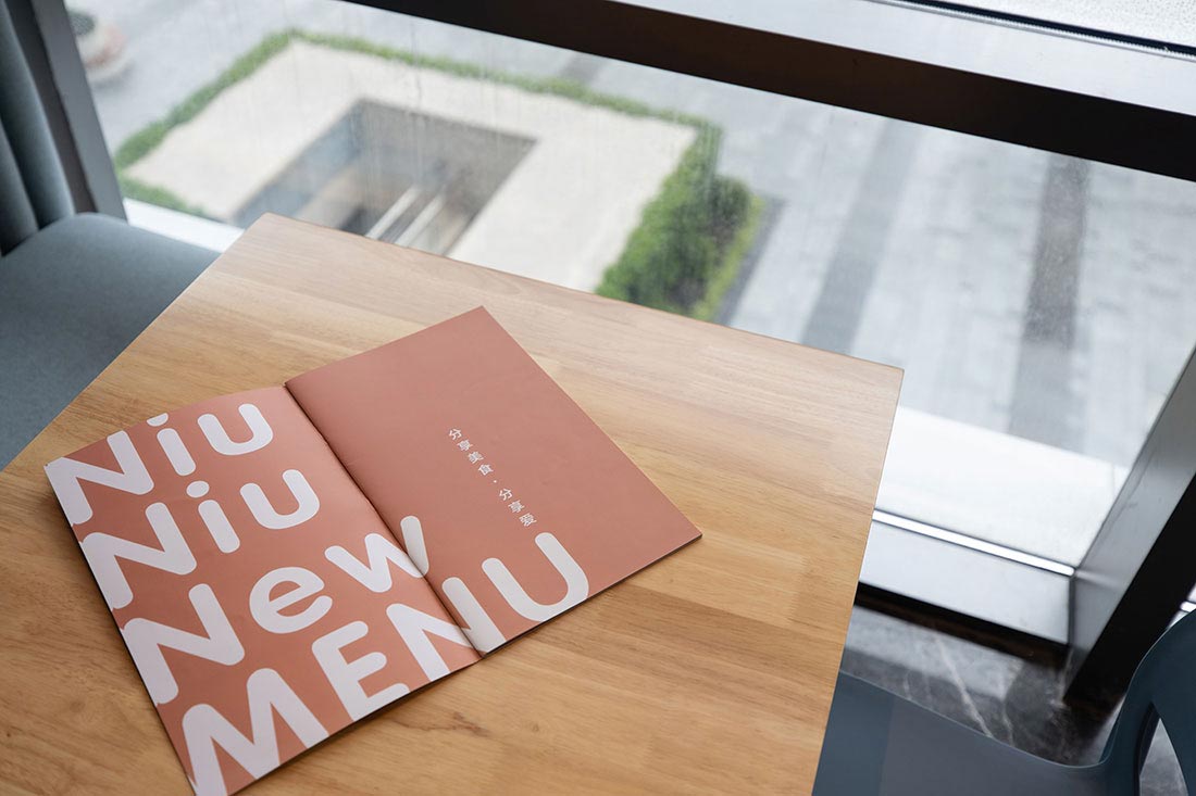 NIU NIU·NEW通过美食把爱和快乐送给每个到这里的我们,空间的细节设计上,更与品牌独特形象联系起来,把LOGO标识融入到空间里,标识中的锐角与弧角设计巧妙地在空间里得到呈现,让品牌的整体性与独特性作一次更好的“自我介绍”,展开我们对生活充满美好的对话交流。