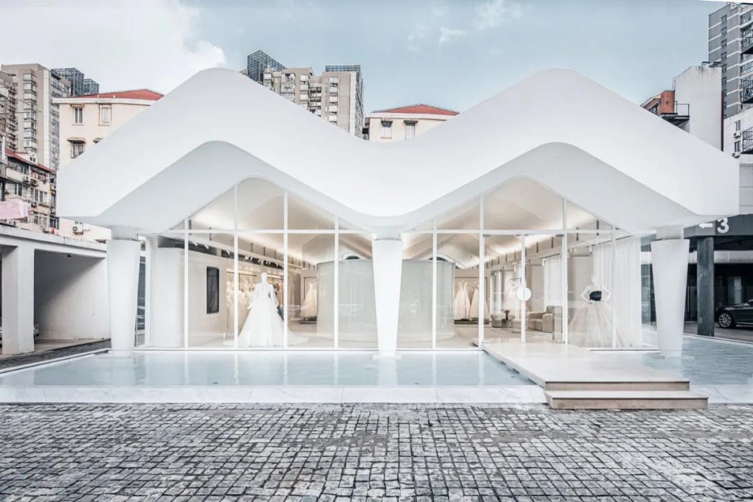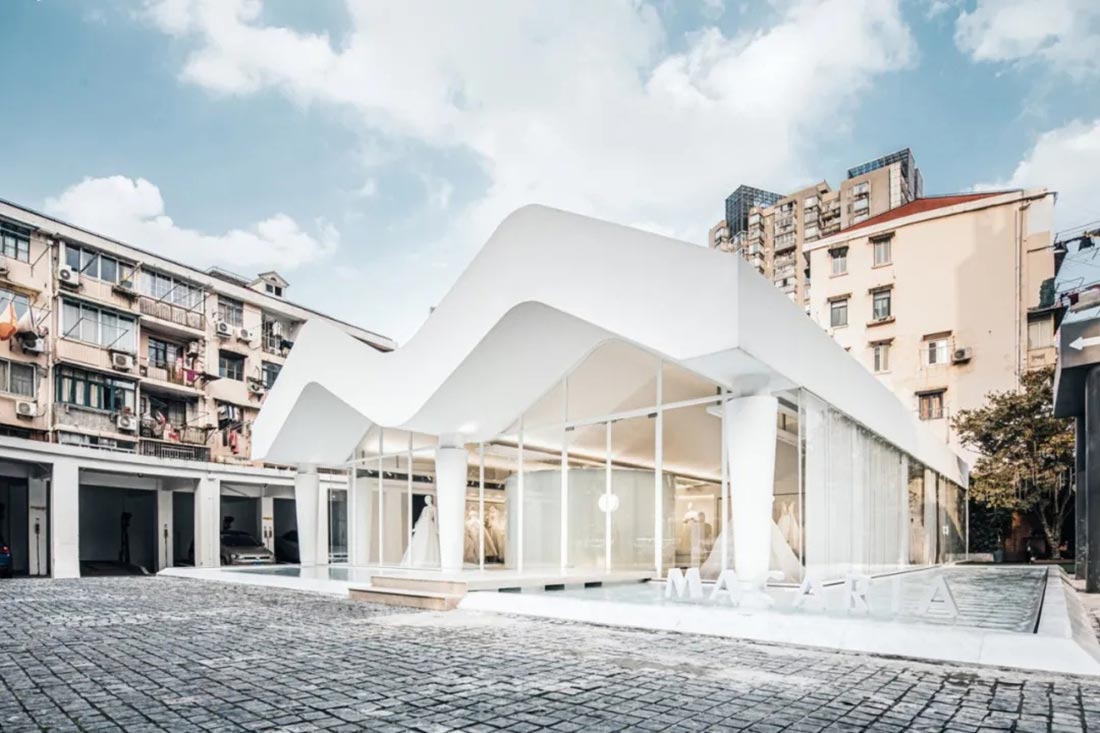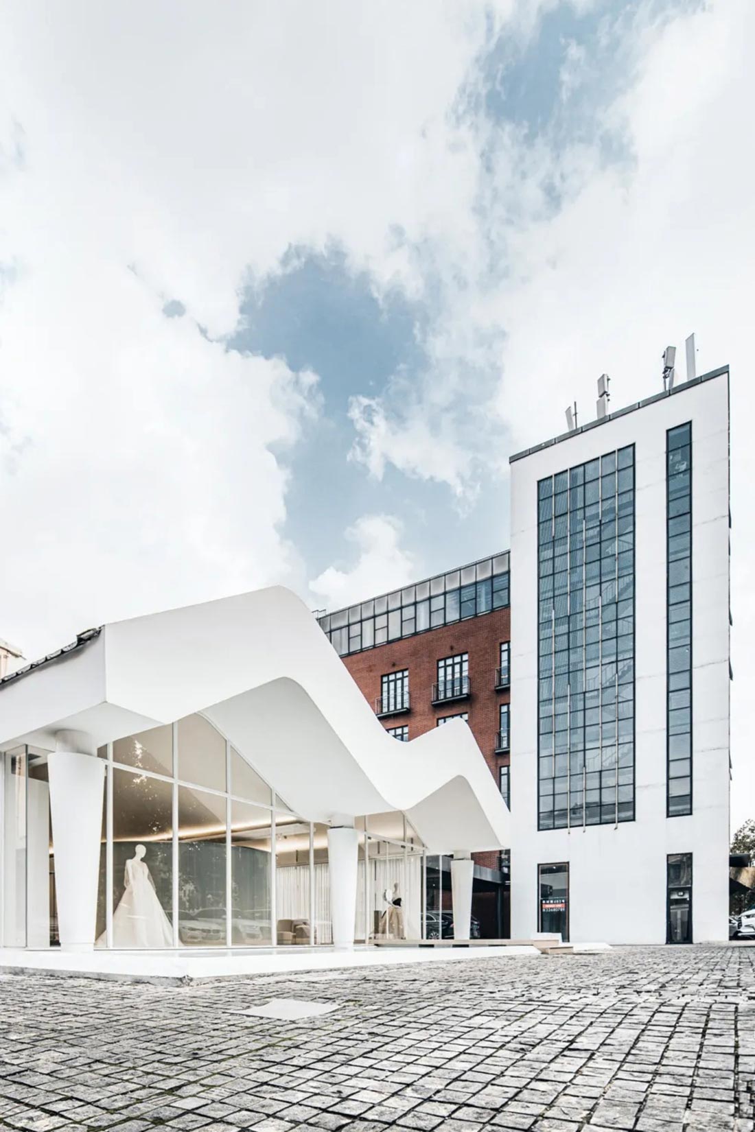 该项目业主是MACARIA国际精品婚纱礼服馆,是一家致力于成为中国顶尖的婚纱礼服买手店。项目坐落于时尚之都上海·徐汇滨江,原建筑是一个单层的钢结构建筑,位于其所在园区的小广场中央,同园区主楼有一个连廊连接,四周为停车场。重新理解建筑与周围环境的关系,规避原有环境的不利因素,成为这个项目首先需要解决的问题。