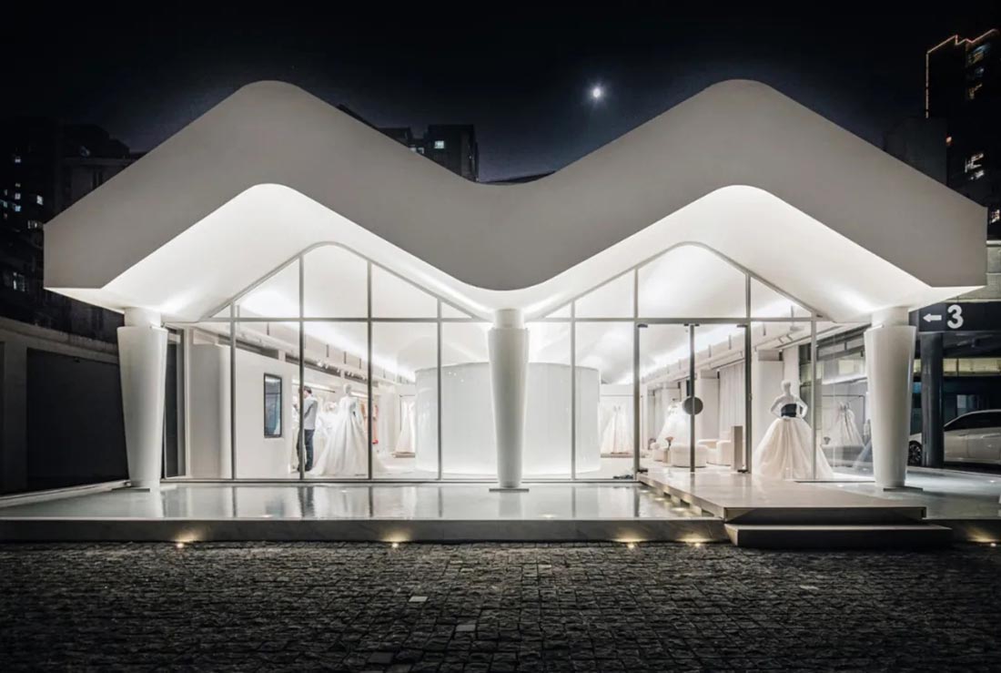 白色立面玻璃结构将自然光线引进空间,与室内灯光交汇,使内部空间柔和而富有穿透力,舒展迷人姿态。
