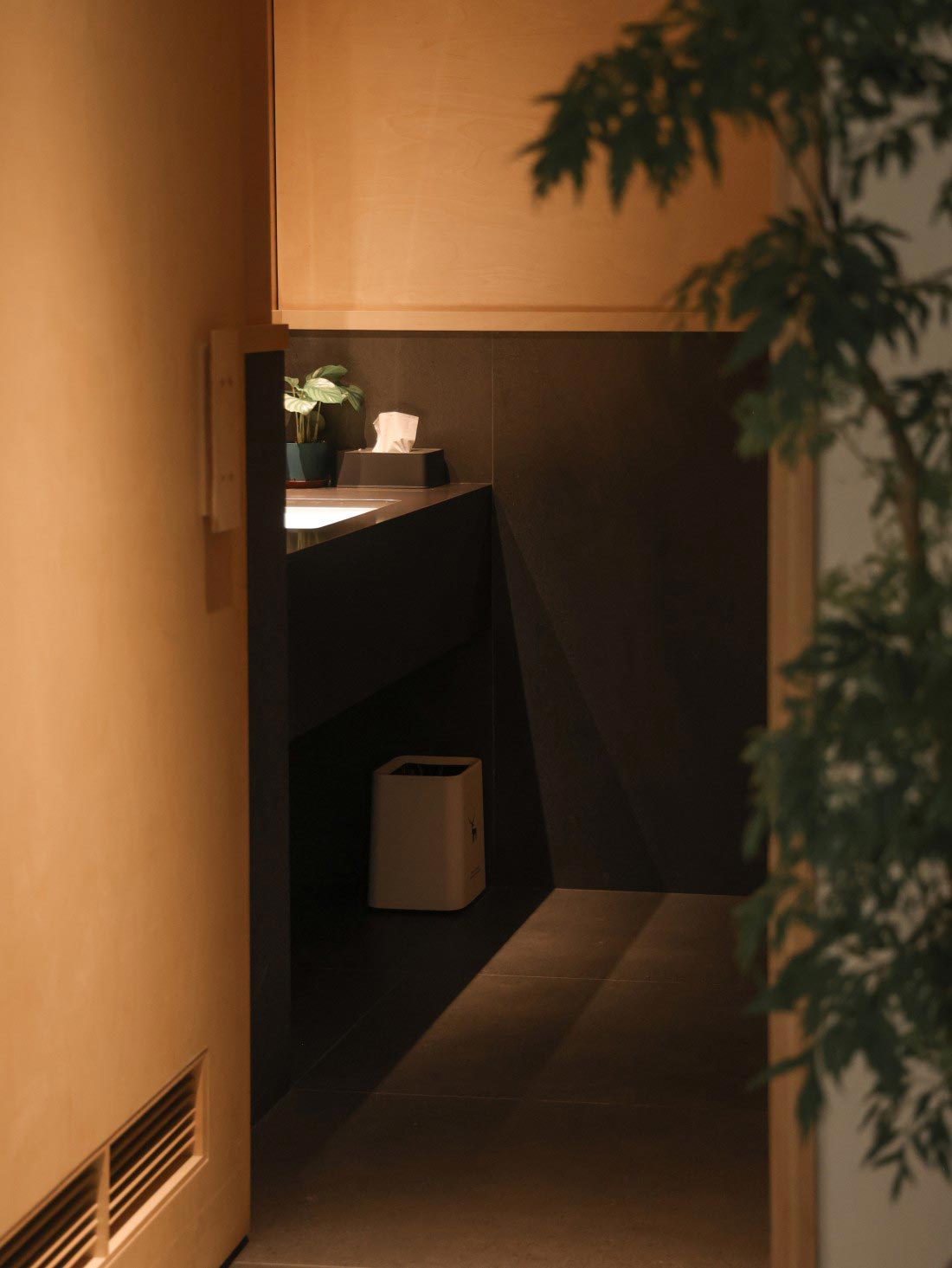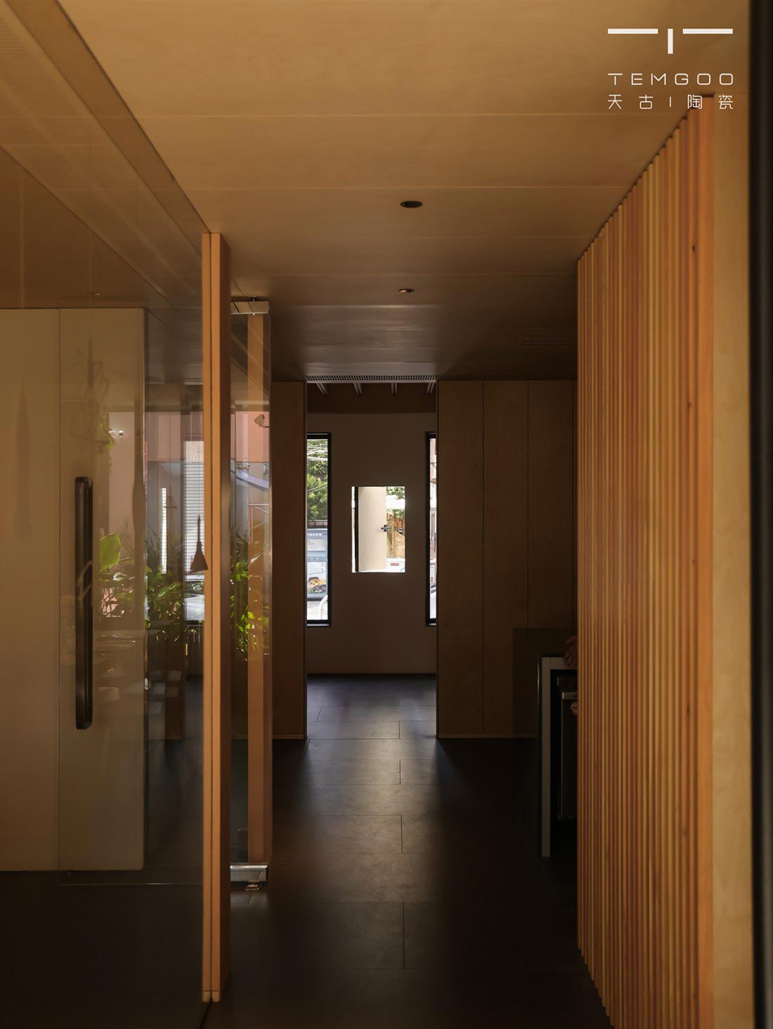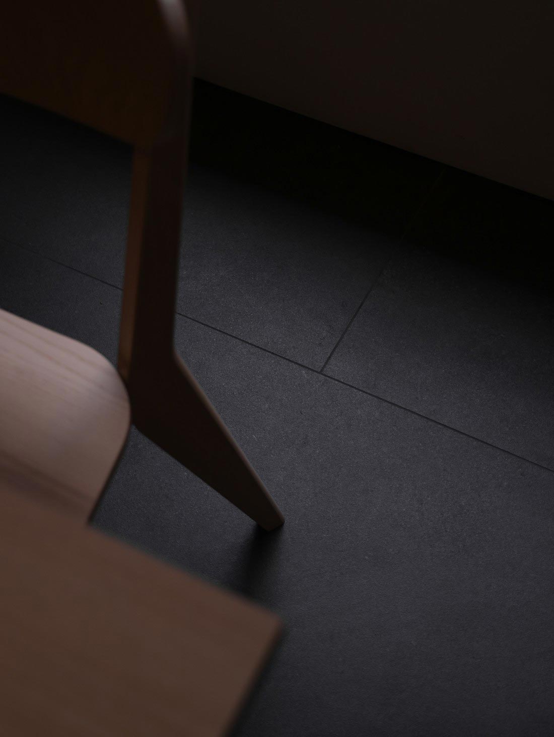 藏在忽明忽暗处的灯光,温暖的木质软装和炭黑色「SRA细石粒12610M」,冷暖对比下的色调让整个空间显得静谧而温馨,让用餐中的人们不自觉放缓声量,享受此刻的宁静。