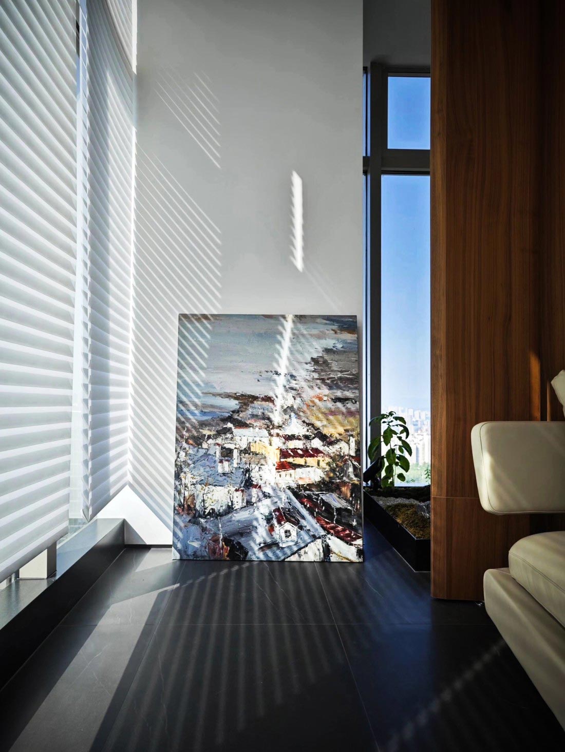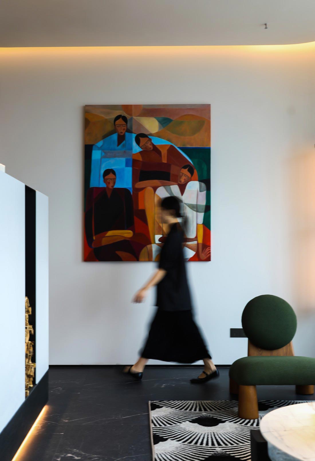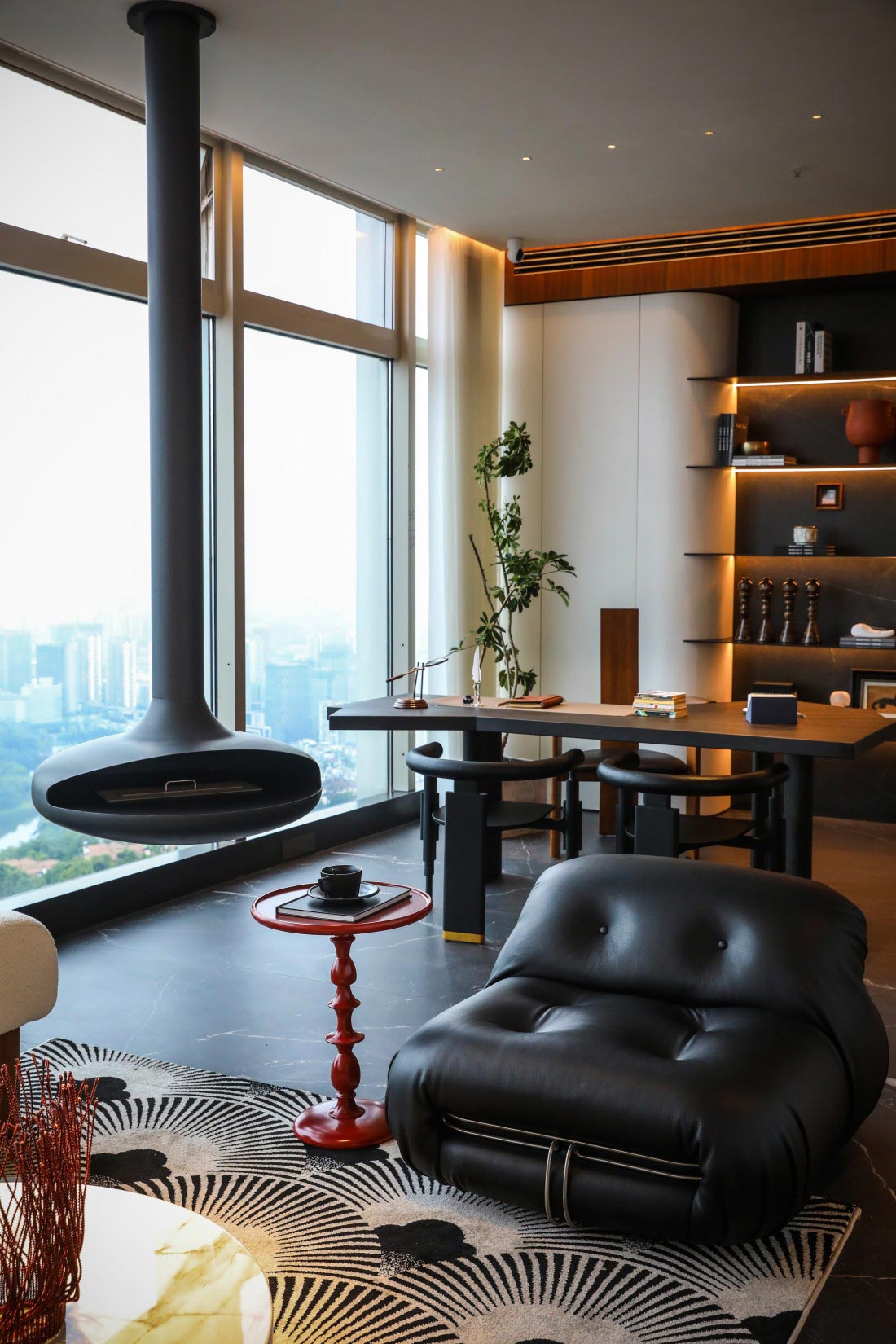 用小边几替代置物,留出来的是开阔的活动空间。在这里完成一场工作洽谈,或者放松沉思,一定会很自在。