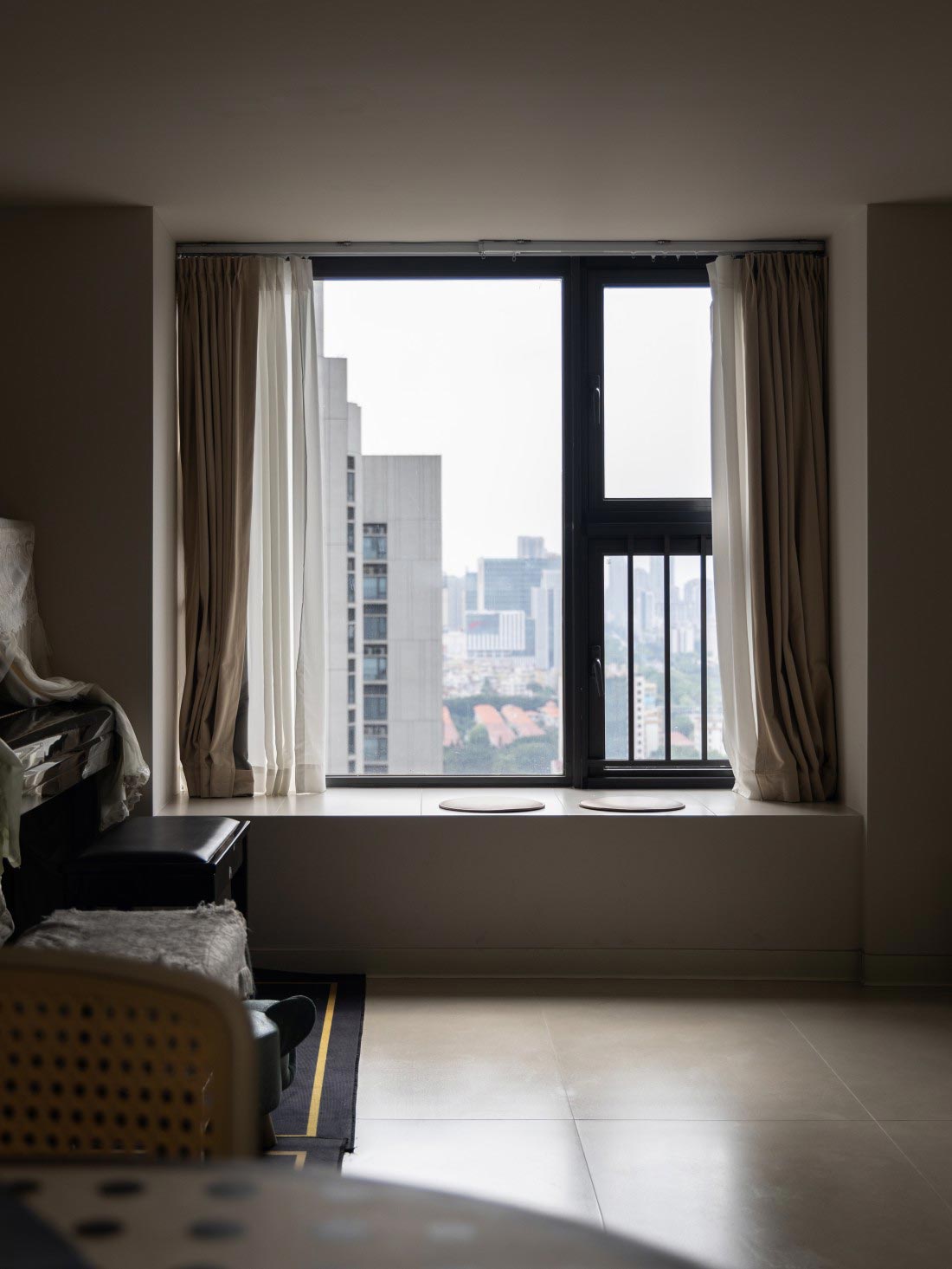 一楼拥有大大的窗户,极佳的视野观感。素水泥的肌理存于各个角落,当阳光撒进来,赋予空间一种干净、细腻的触感,自由且随性。