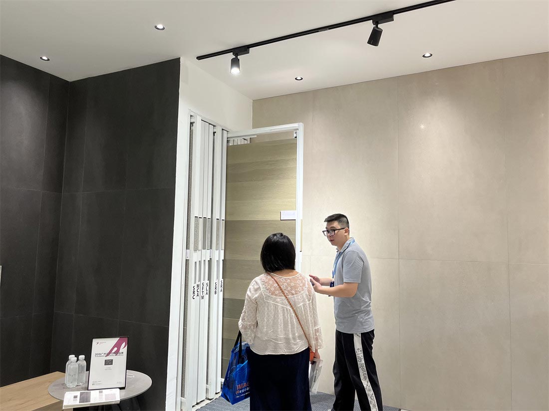 去年底,我们进驻到中国陶瓷城,位于广东省佛山市禅城区江湾三路2号。根据空间导航标识,来到3楼品类先锋馆入口就可以看到我们的选材空间,我们的产品都会上新到这里,给你感受瓷砖这种材料的独特美感。